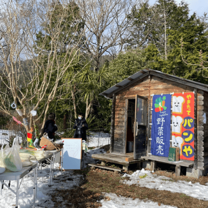 大津市内、比良近隣地域で採れたお野菜や卵に、パン、お昼ご飯に最適なおにぎりなどを販売しました。
