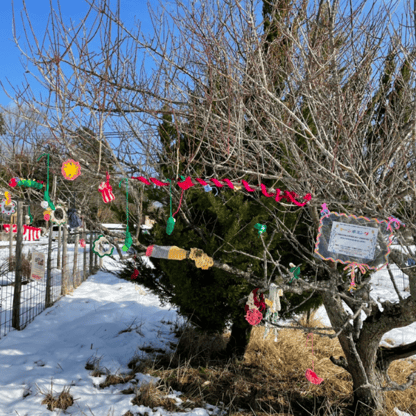 まほろばの里の木々を「ヤーンボミング」で飾りました。