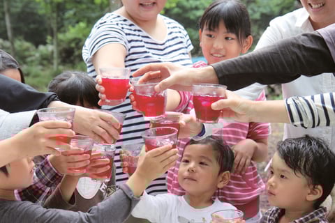 比良山系と琵琶湖を望む里山育ちの元気な赤シソで「心と体が喜ぶ」ジュースを作りました。